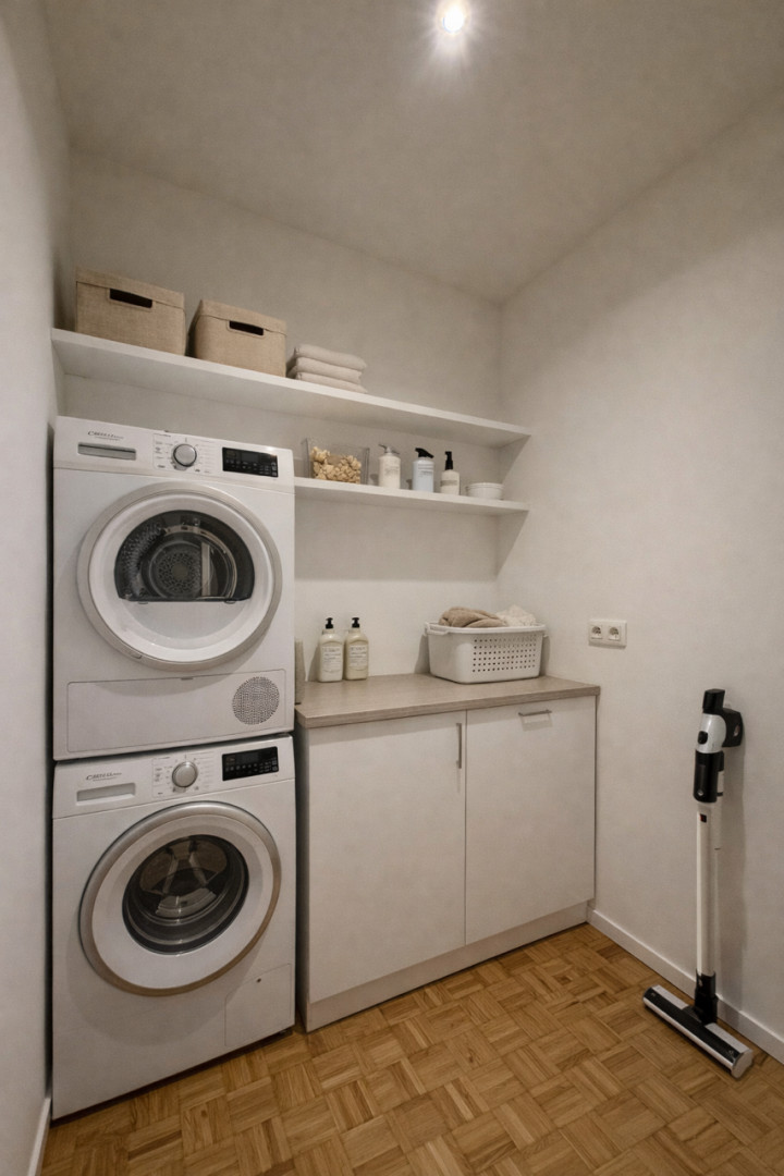Grâce à son PEB A+ et à la présence de panneaux photovoltaïques, ce logement bénéficie d’une excellente efficacité énergétique, garantissant un confort optimal et des charges maîtrisées.