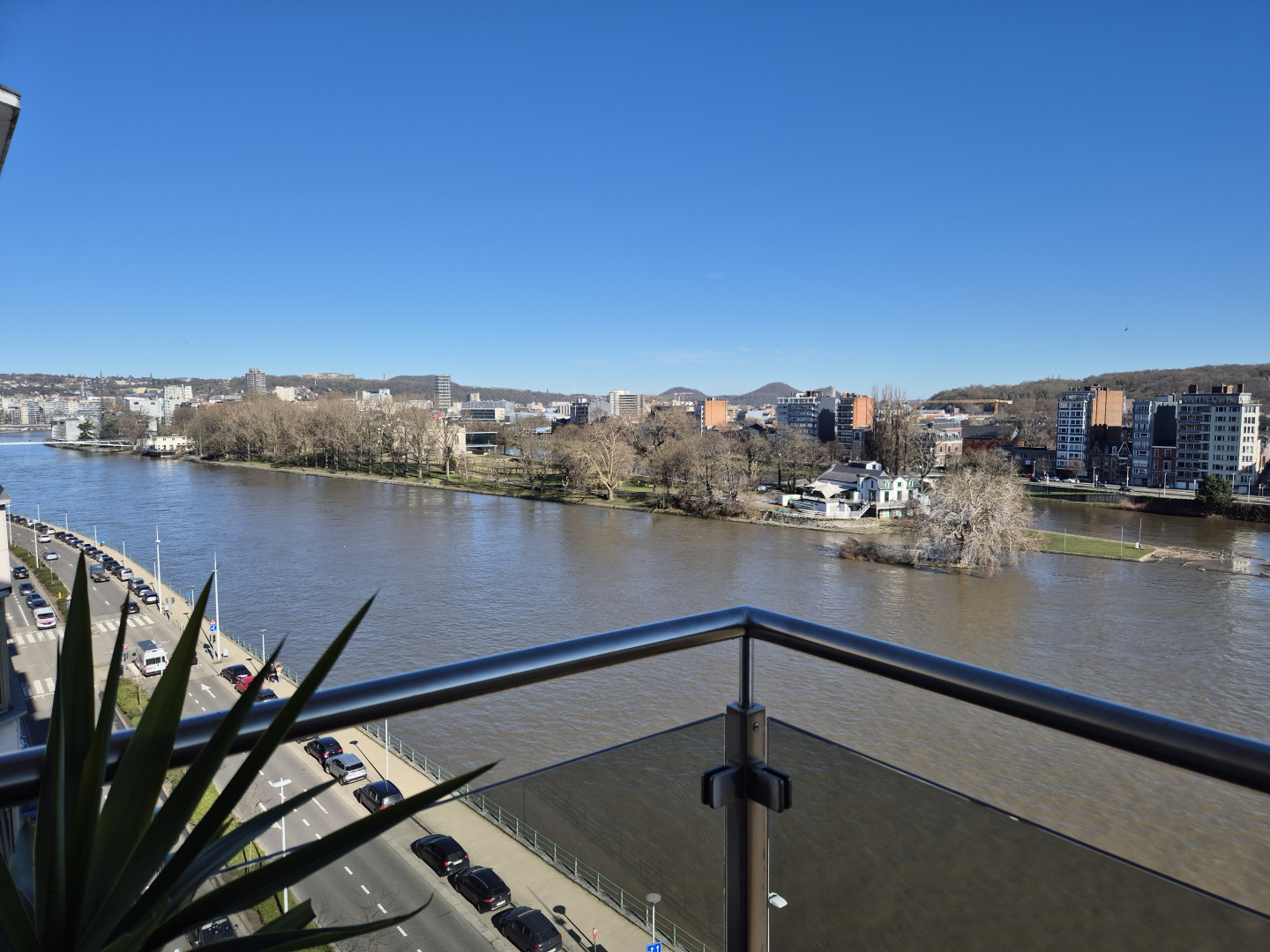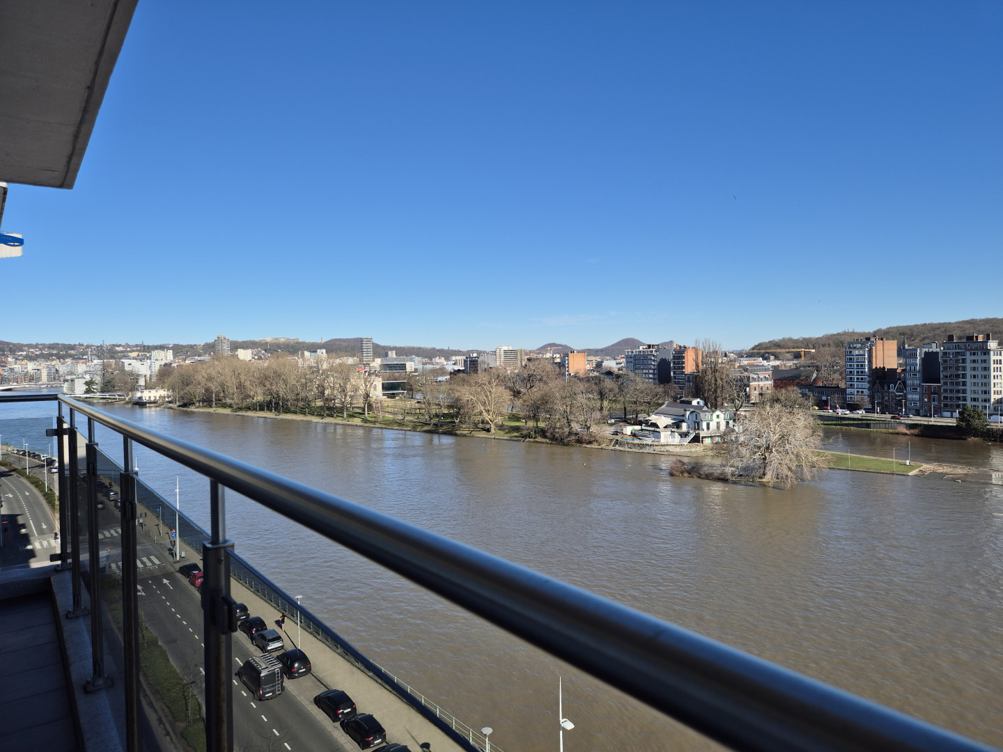 La vue dégagée sur la Meuse et le parc de la Boverie renforce son charme.