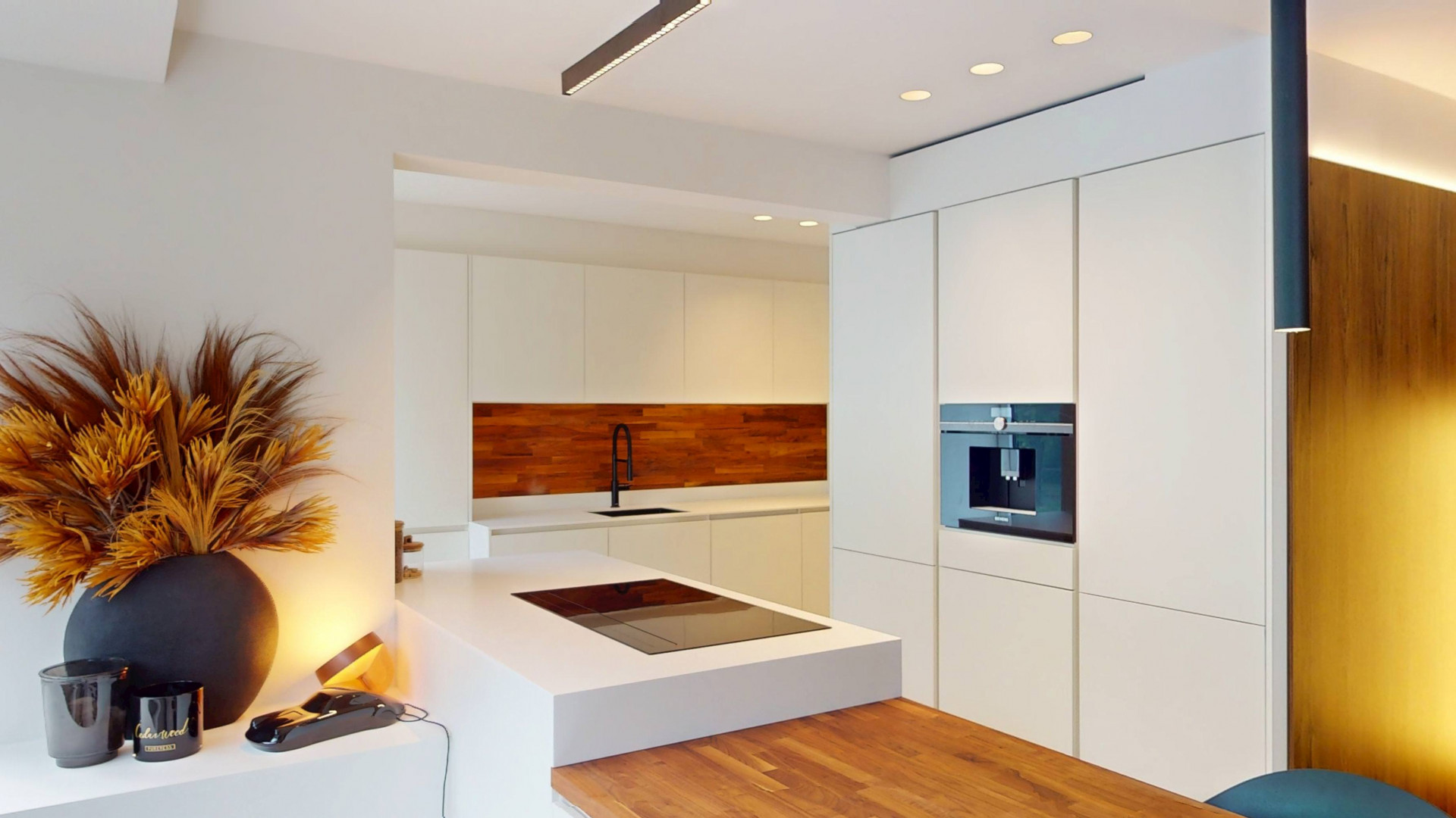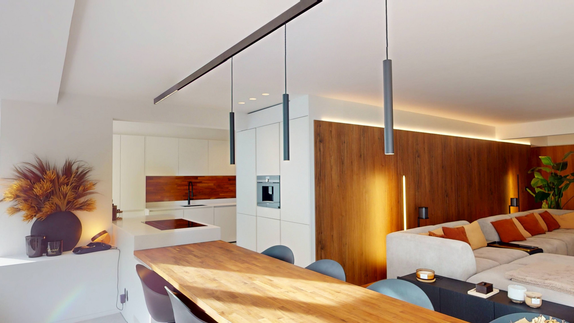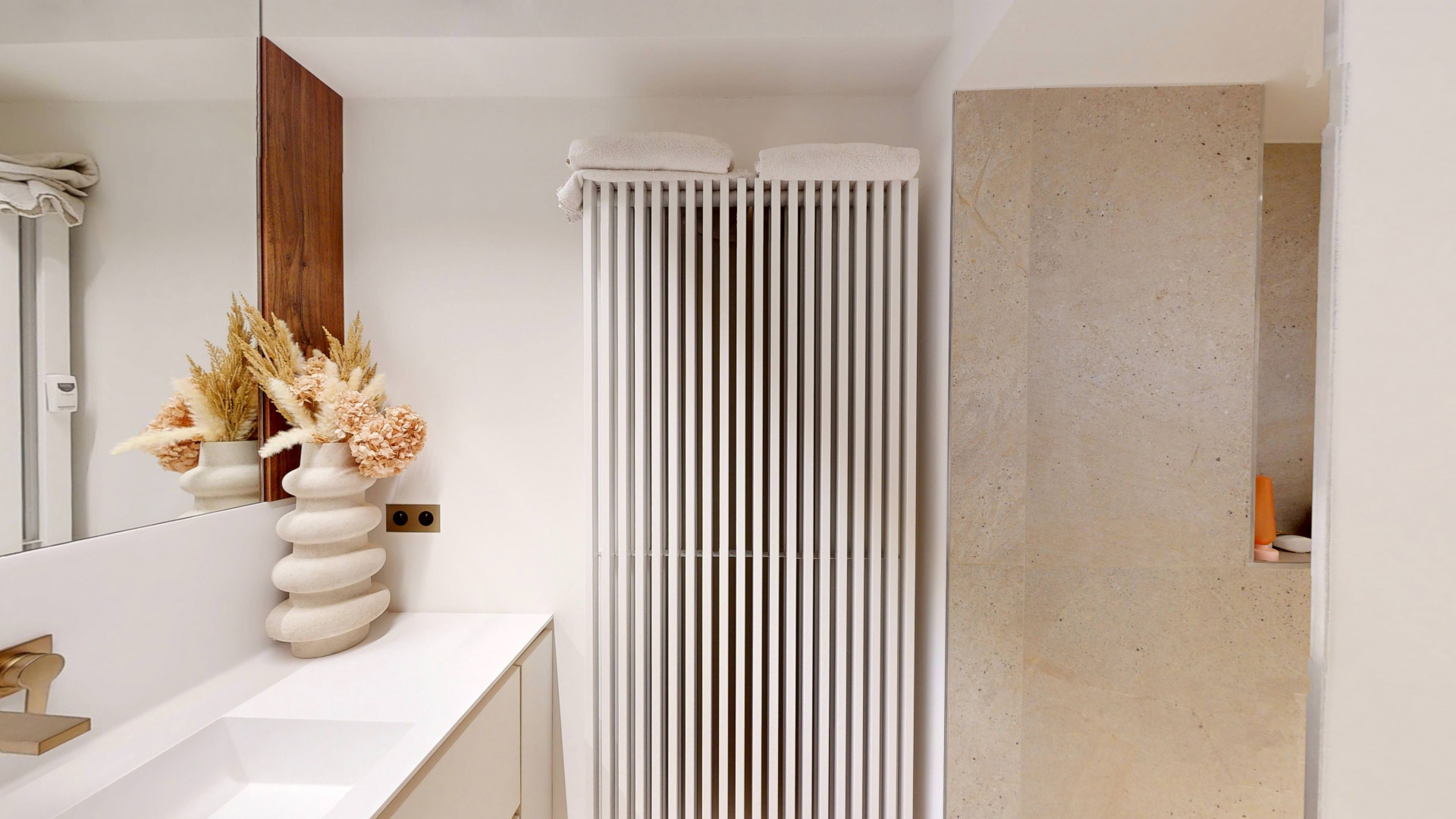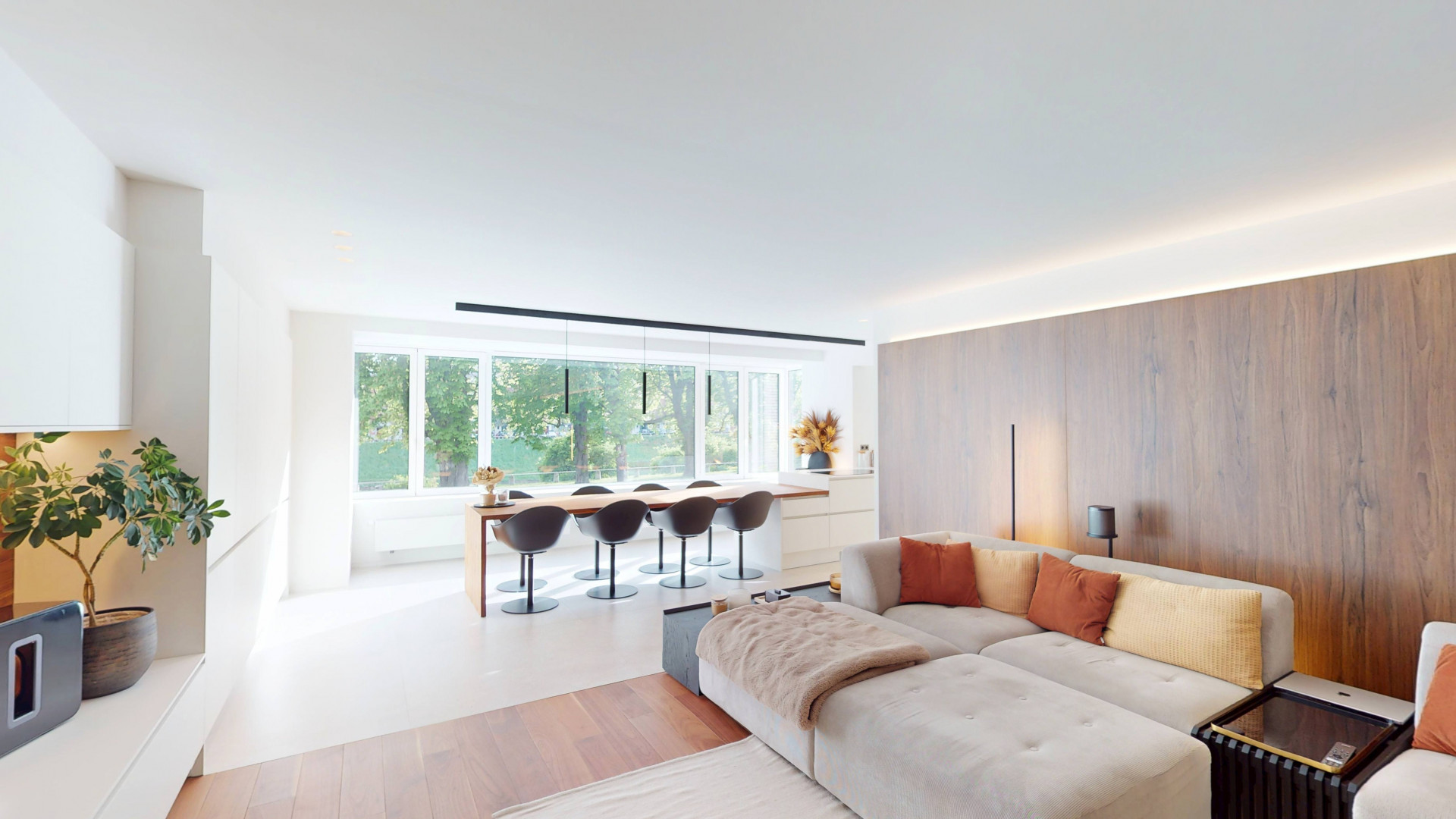 Réalisée par le bureau d’architecture d’intérieur Ladeuxo, la rénovation a été pensée dans les moindres détails avec des matériaux de très haute qualité. Portes affleurantes, associations élégantes de matériaux nobles, finitions irréprochables… Rien n’a été laissé au hasard. L’ensemble est piloté par un système de domotique Siemens, garantissant confort, sécurité et contrôle personnalisé de votre espace.