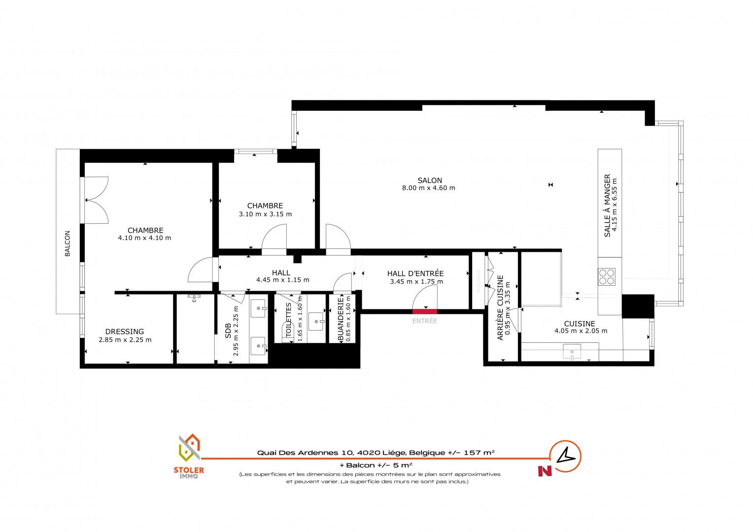 Appartement de haut standing entièrement rénové, idéalement situé sur le prestigieux quai des Ardennes à Liège, sans vis-à-vis et offrant un cadre de vie à la fois lumineux et dégagé.