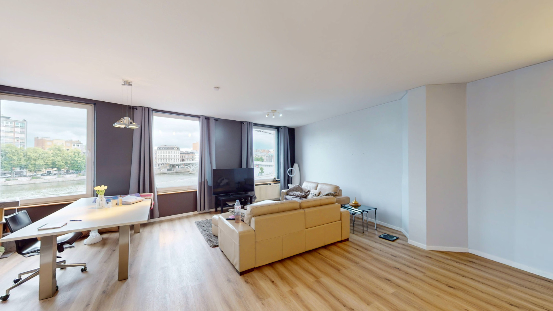 Idéalement situé au 2ᵉ étage d’un immeuble avec vue sur Meuse, à quelques pas du centre-ville de Liège, ce spacieux appartement de ± 89 m² offre un cadre de vie moderne, confortable et baigné de lumière naturelle.
