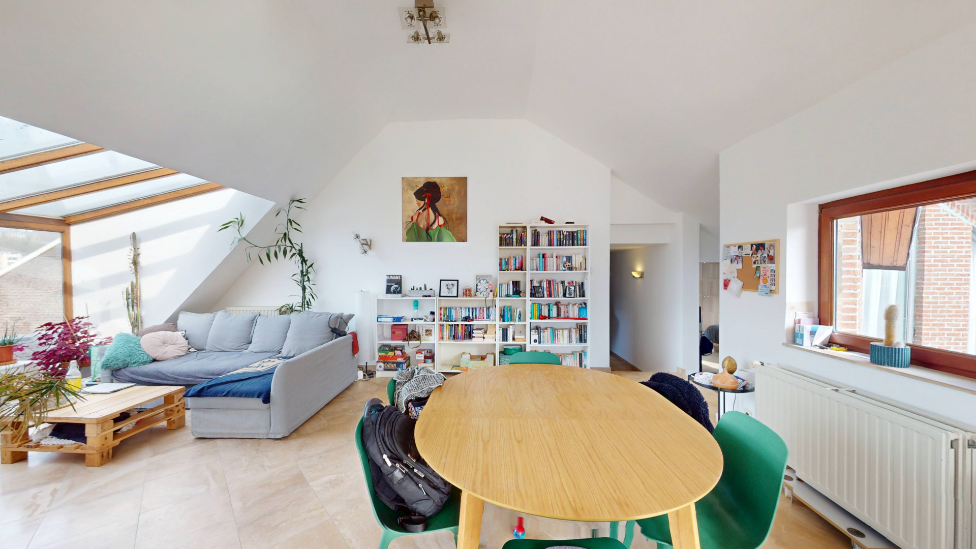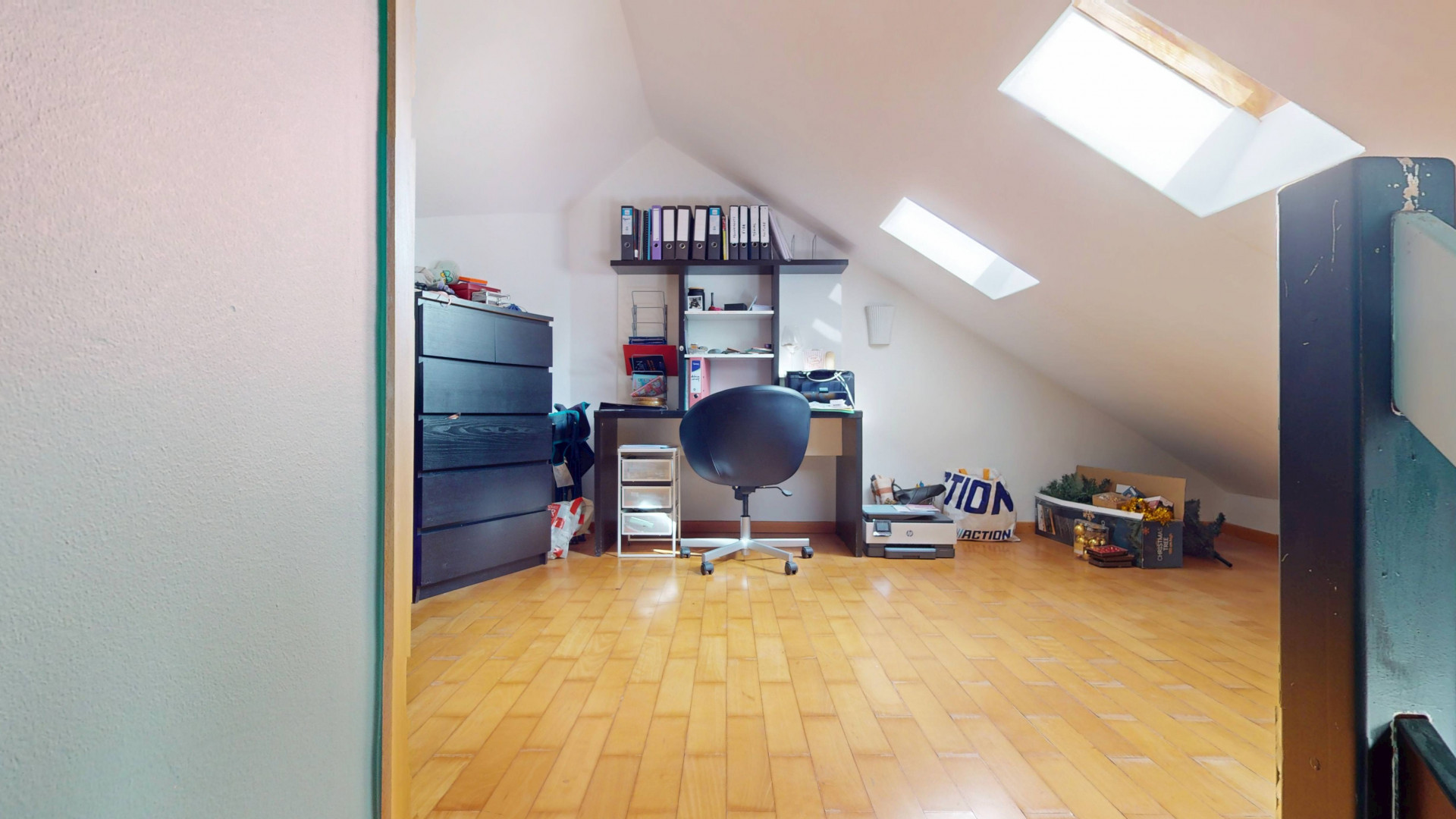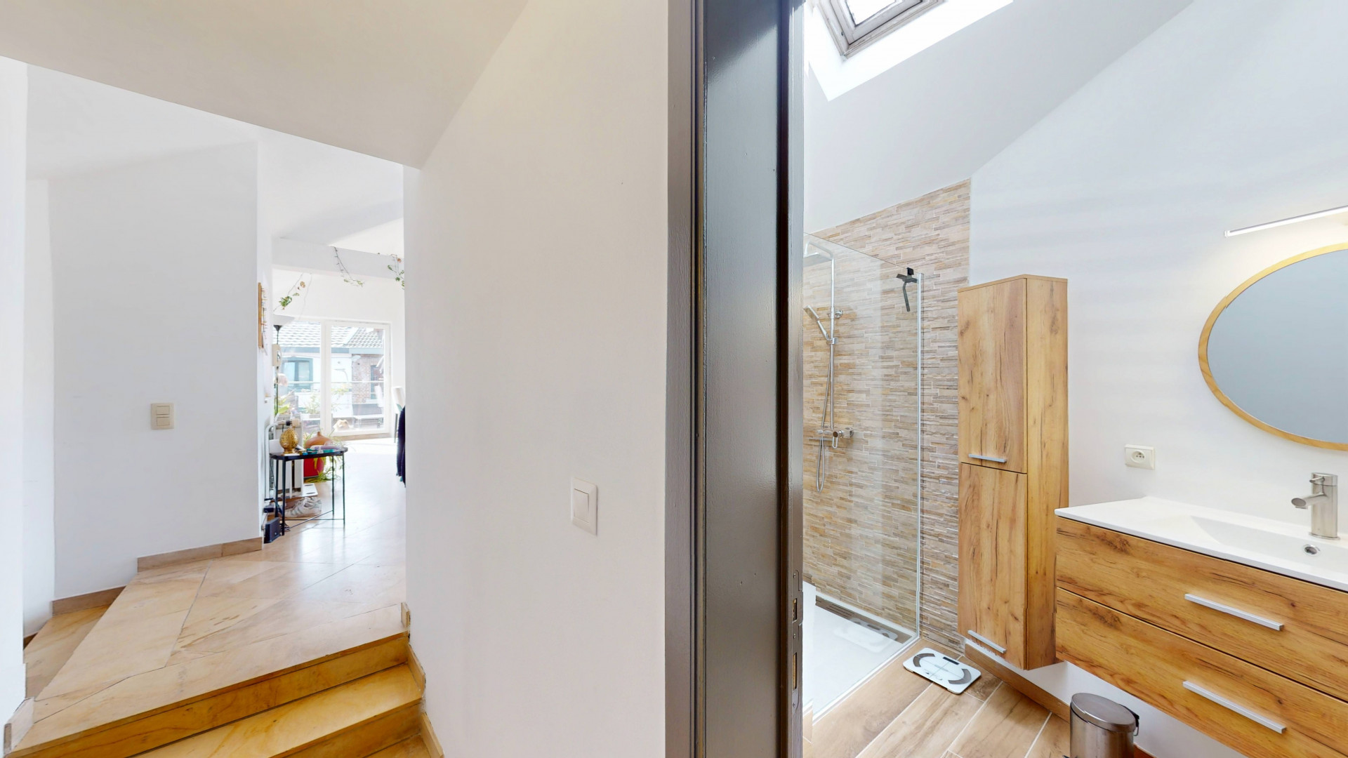 Côté nuit, vous trouverez une grande chambre principale (± 4,60 x 4,45 m) avec rangements intégrés, une seconde chambre / bureau à l’étage (± 5,65 x 3,60 m), offrant un espace polyvalent idéal pour le télétravail ou une chambre supplémentaire, une salle de douche fonctionnelle, un espace dressing ainsi qu’un espace ouvert à l’étage complètent ce bien, apportant confort et possibilités d’aménagement supplémentaires.