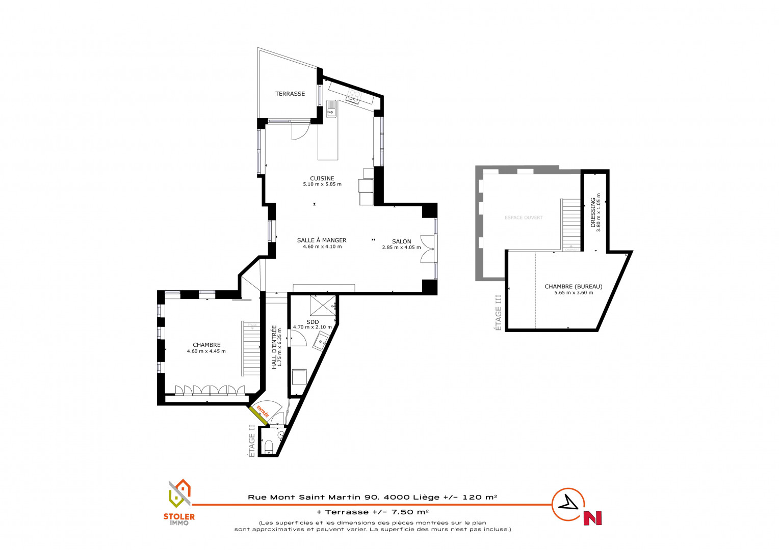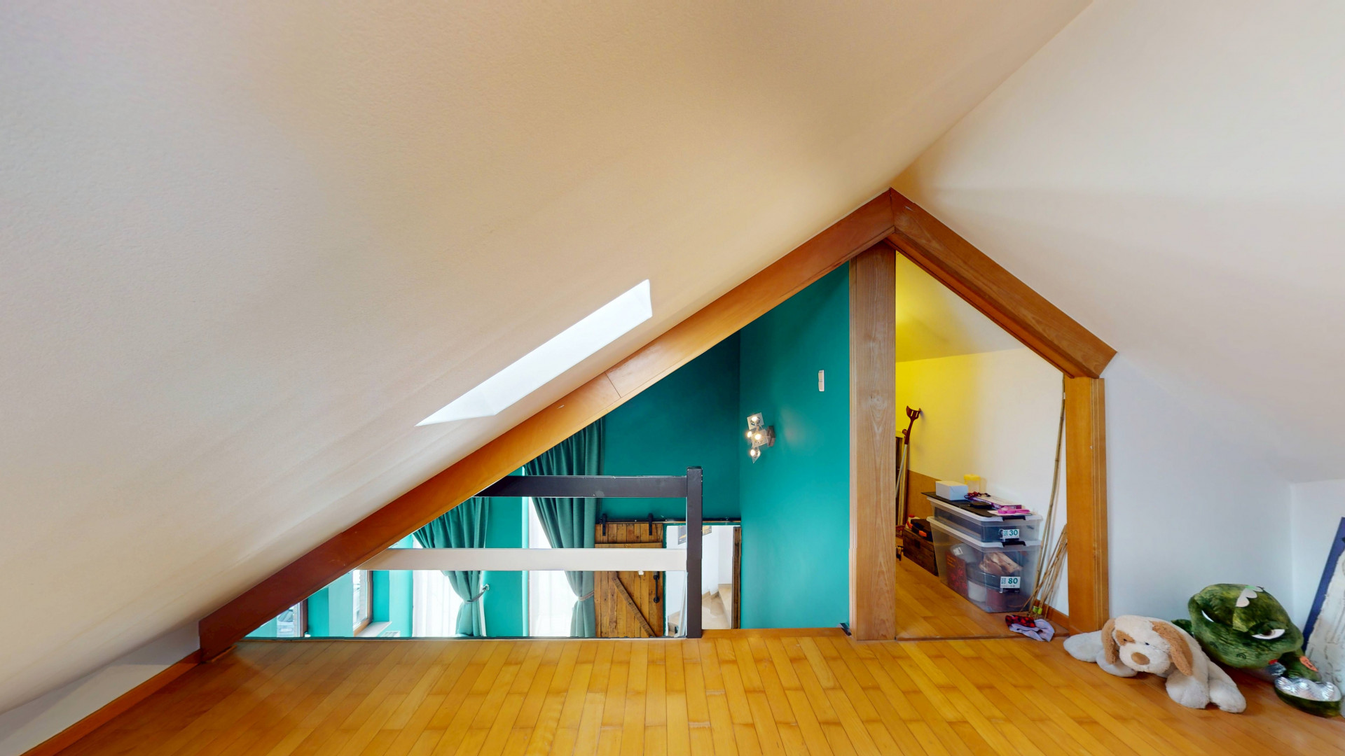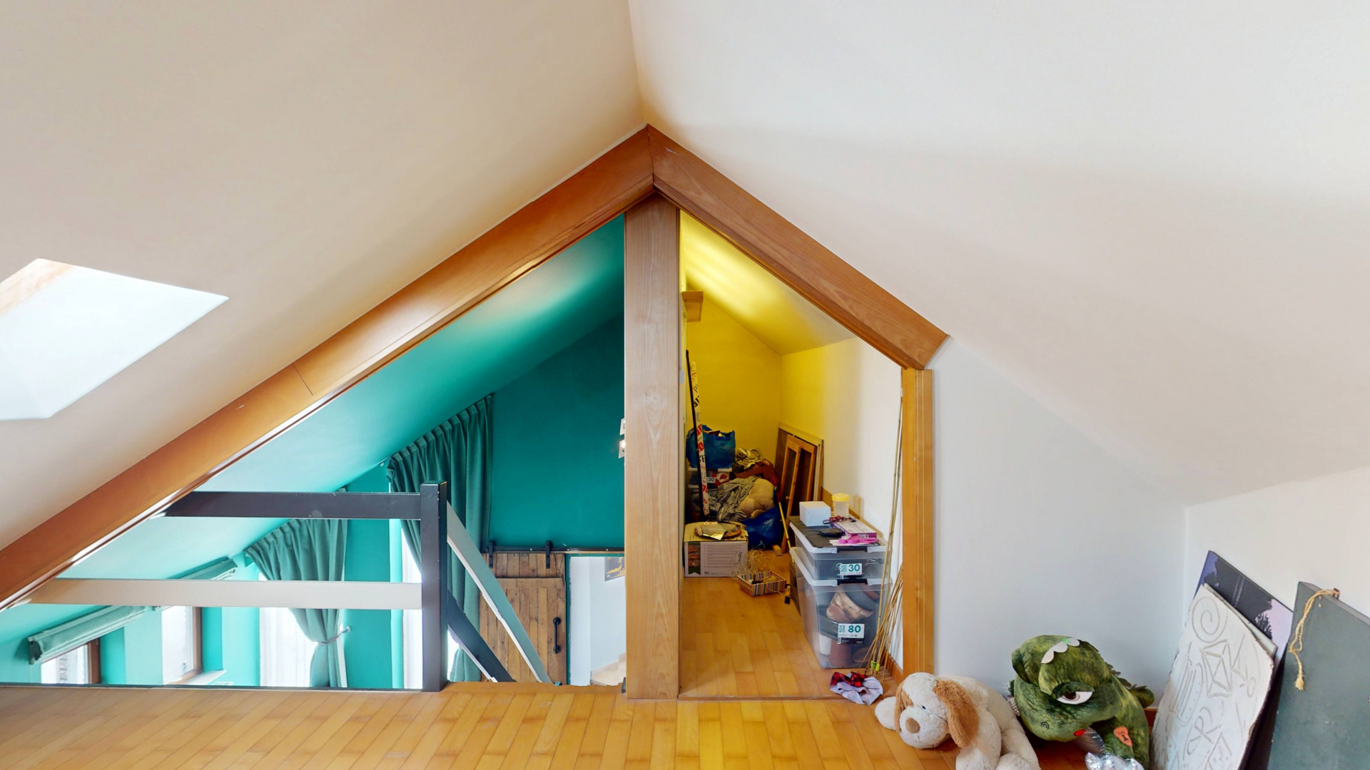 Côté nuit, vous trouverez une grande chambre principale (± 4,60 x 4,45 m) avec rangements intégrés, une seconde chambre / bureau à l’étage (± 5,65 x 3,60 m), offrant un espace polyvalent idéal pour le télétravail ou une chambre supplémentaire, une salle de douche fonctionnelle, un espace dressing ainsi qu’un espace ouvert à l’étage complètent ce bien, apportant confort et possibilités d’aménagement supplémentaires.