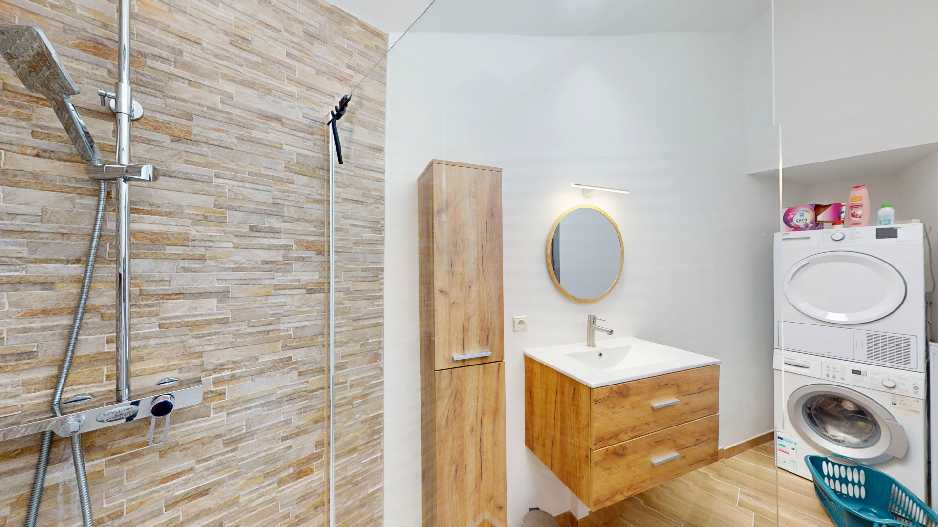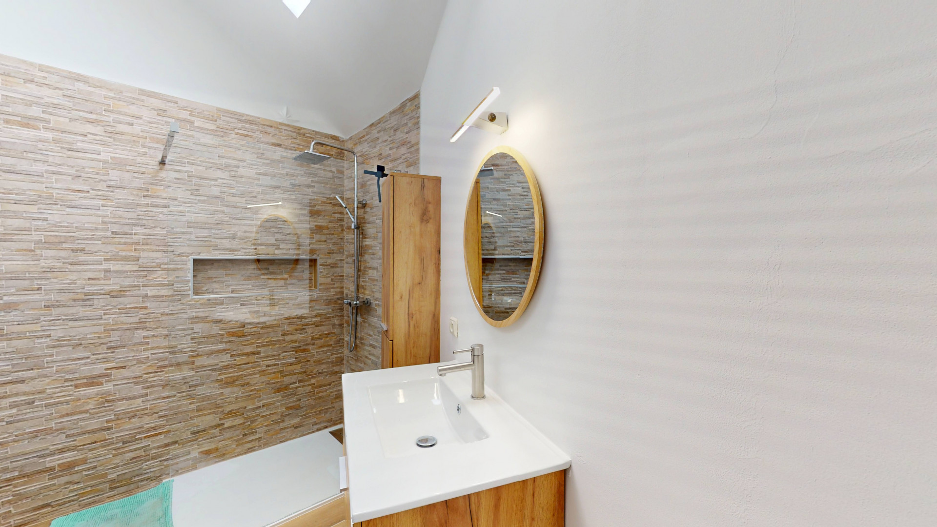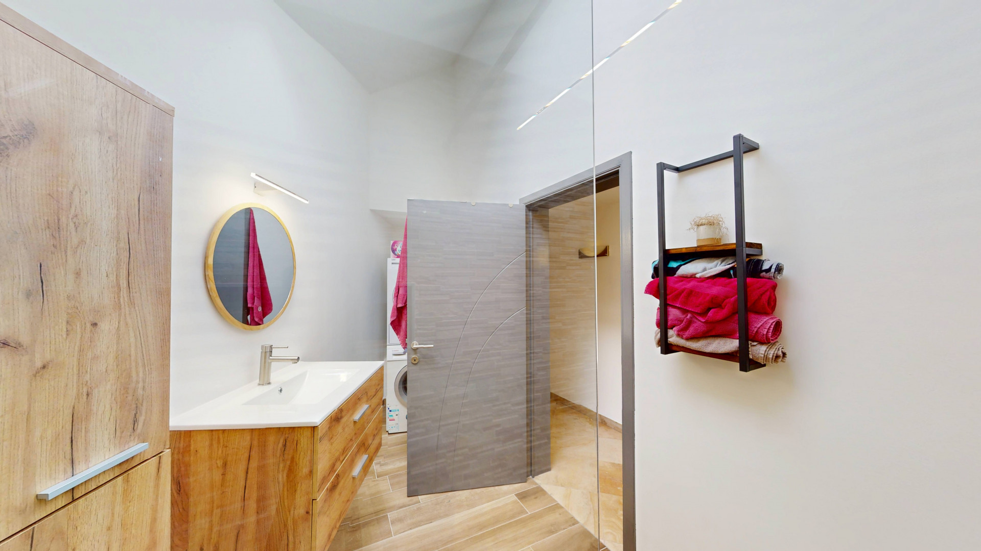 Dès l’entrée, vous découvrez un hall accueillant menant vers les différentes pièces de vie. L’espace principal se compose d’un vaste séjour avec salon et salle à manger, ainsi qu’une cuisine ouverte entièrement équipée offrant un bel espace convivial.