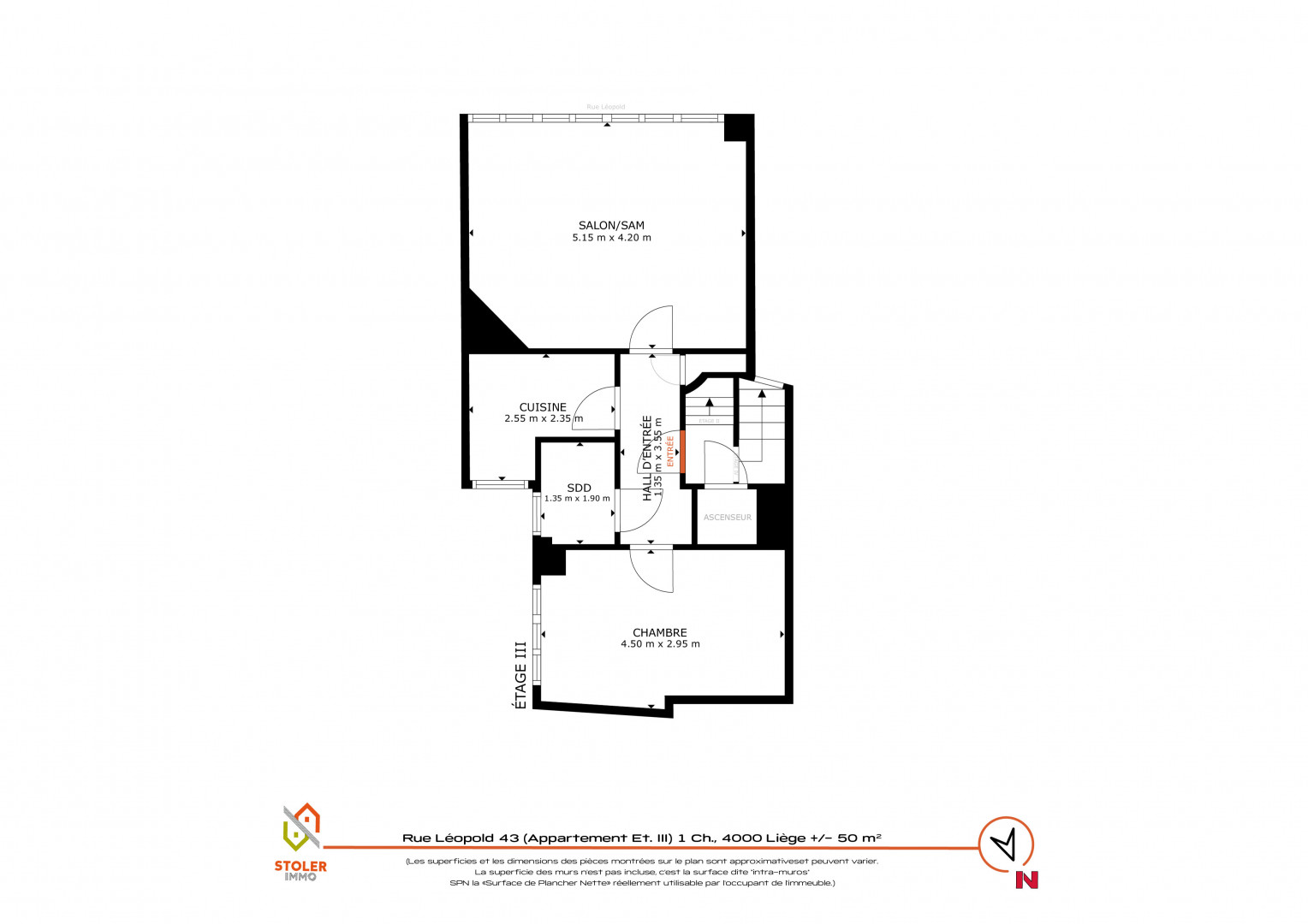Situé au 3ᵉ étage d’un immeuble du centre de Liège, cet appartement d’environ 50 m² offre un beau potentiel de rénovation, à deux pas de la Place Saint-Lambert.