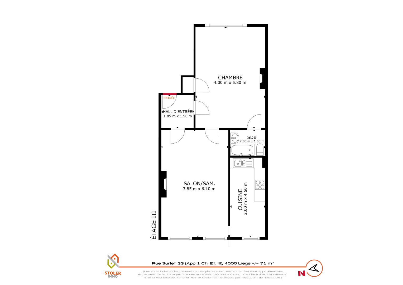 Situé au 3e étage d’un immeuble sans ascenseur, cet appartement une chambre de ± 71 m² bénéficie d’un emplacement central, Rue Surlet à Liège. Le quartier est apprécié pour sa vie de quartier animée et sa proximité immédiate avec toutes les commodités : commerces, universités, transports en commun et accès rapide au centre-ville.