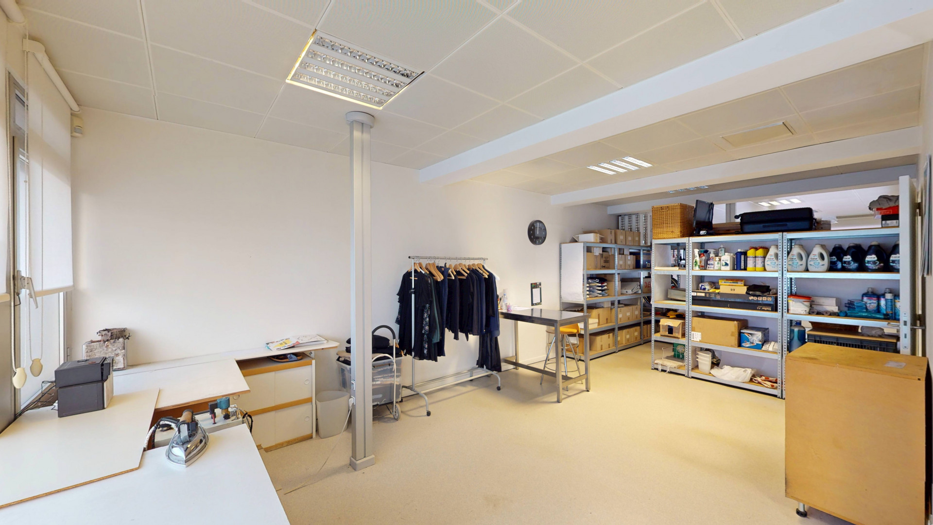 Il se compose d’une grande pièce principale, de plusieurs espaces séparés pouvant servir de bureaux ou salles de consultation, d’un local technique et d’un WC.