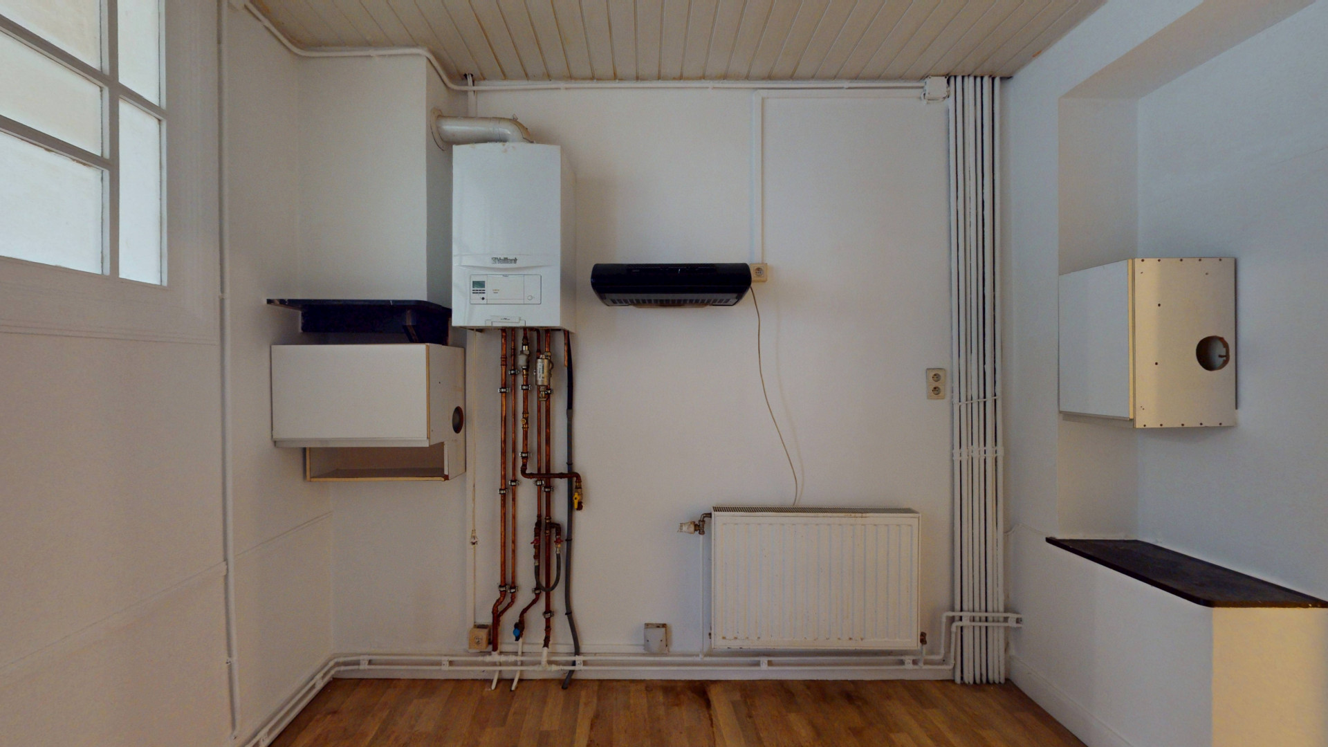 Le bureau dispose de compteurs individuels pour chaque énergie, et l’installation électrique est aux normes.