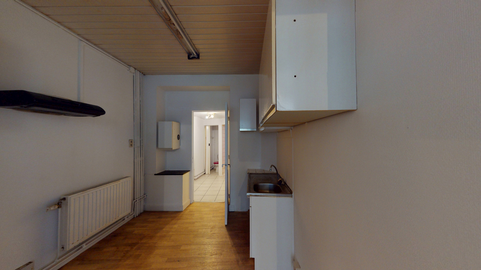Ce bien se compose d’un espace principal lumineux avec une grande vitrine, d’une arrière-pièce aménageable en cuisine, ainsi qu'un espace WC.