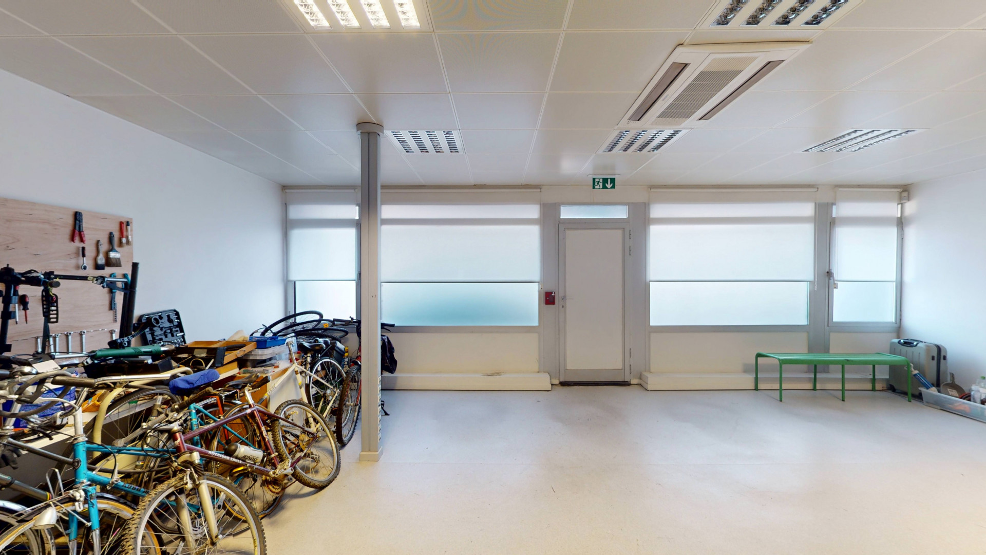 Il se compose d’une grande pièce principale, de plusieurs espaces séparés pouvant servir de bureaux ou salles de consultation, d’un local technique et d’un WC.
