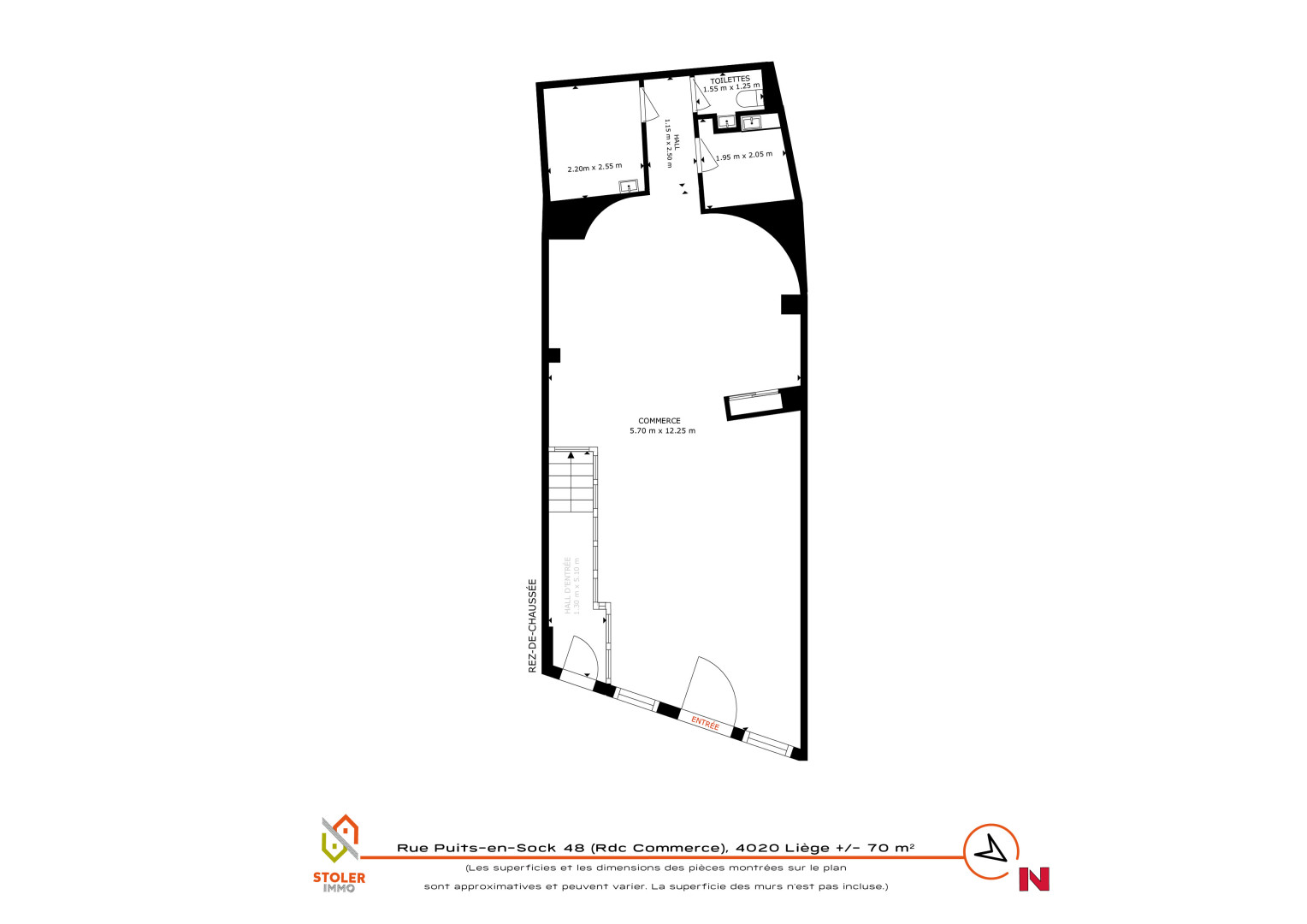 Avec ses 70 mètres carrés de surface exploitable, ce local offre un espace généreux et fonctionnel pour accueillir une variété d'activités commerciales.