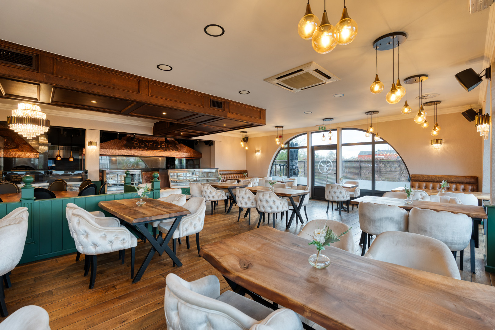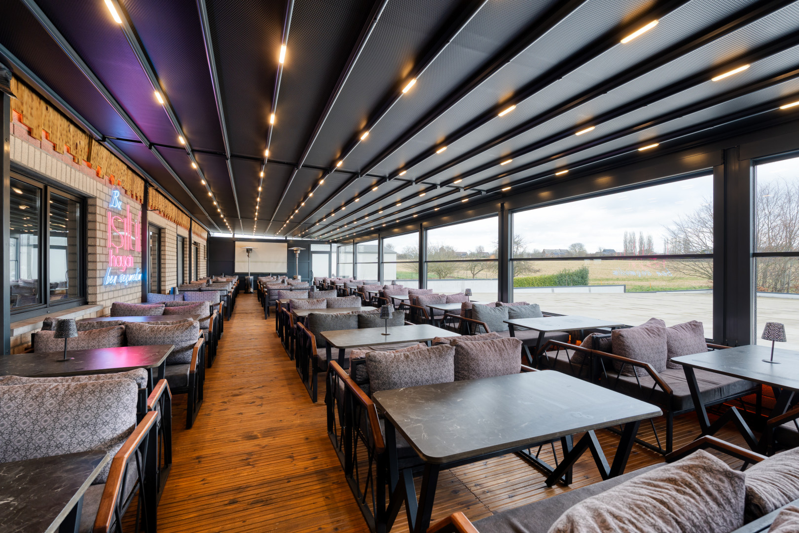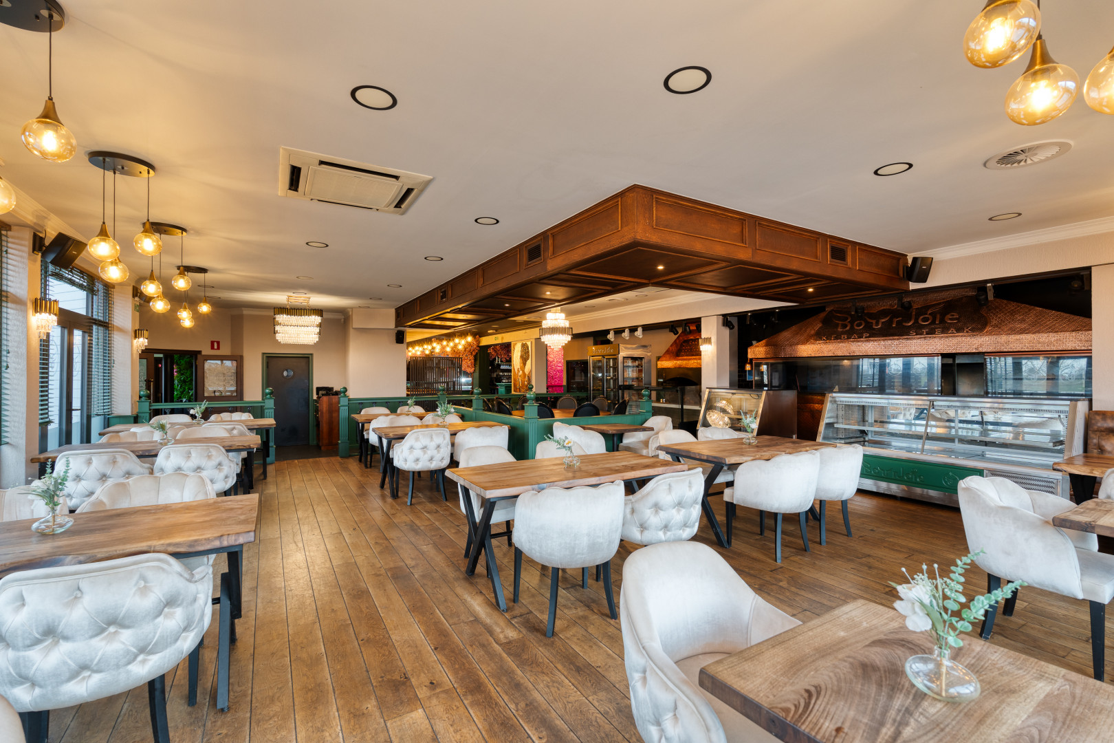 Le restaurant développe une superficie d’environ 915 m² répartie entre le rez-de-chaussée, l’étage et le sous-sol, avec une capacité d’accueil pouvant atteindre 250 couverts. Il dispose de vastes salles lumineuses, de terrasses couvertes et découvertes ainsi que d’une cuisine professionnelle entièrement équipée, adaptée à une exploitation horeca classique, événementielle ou de groupe.