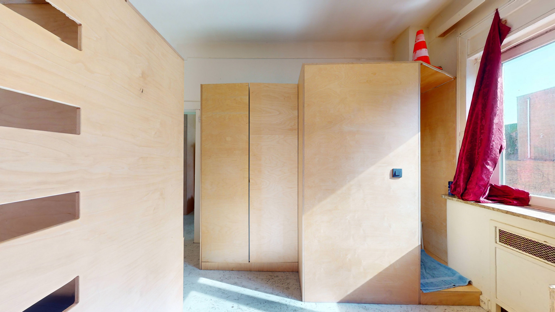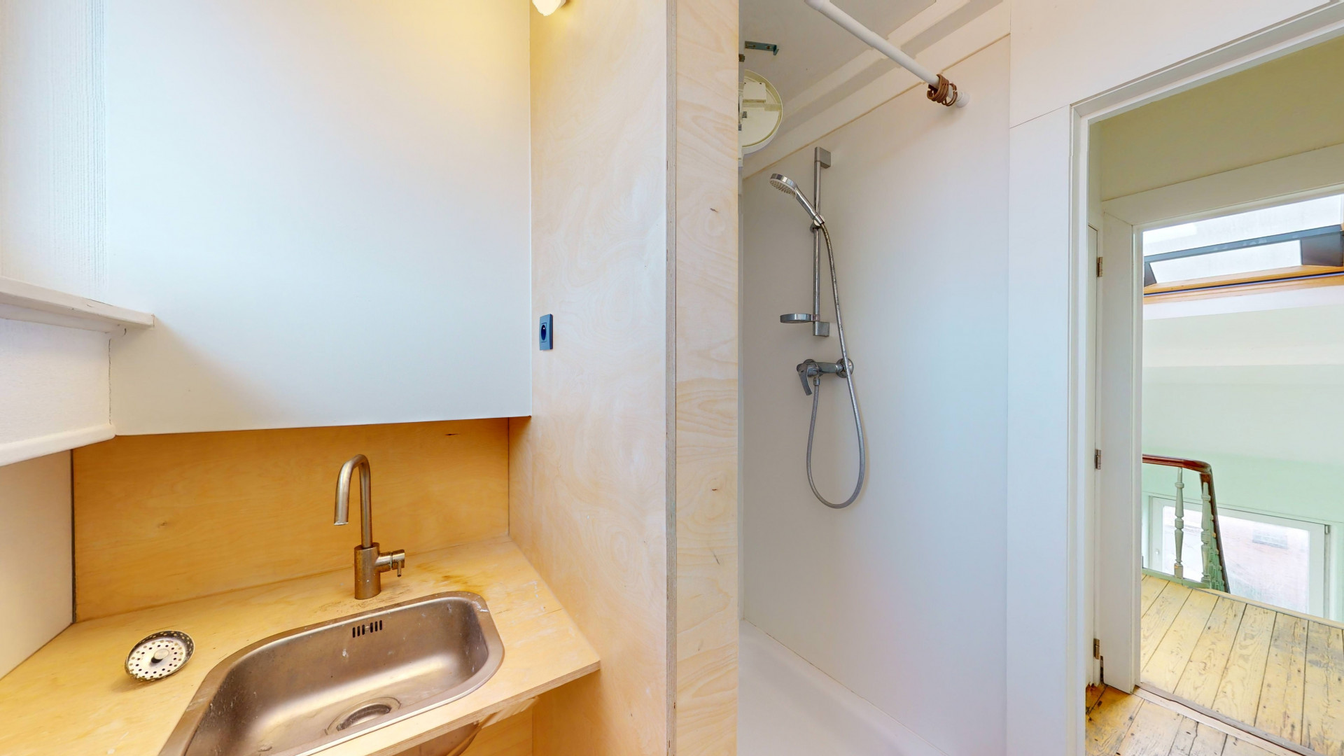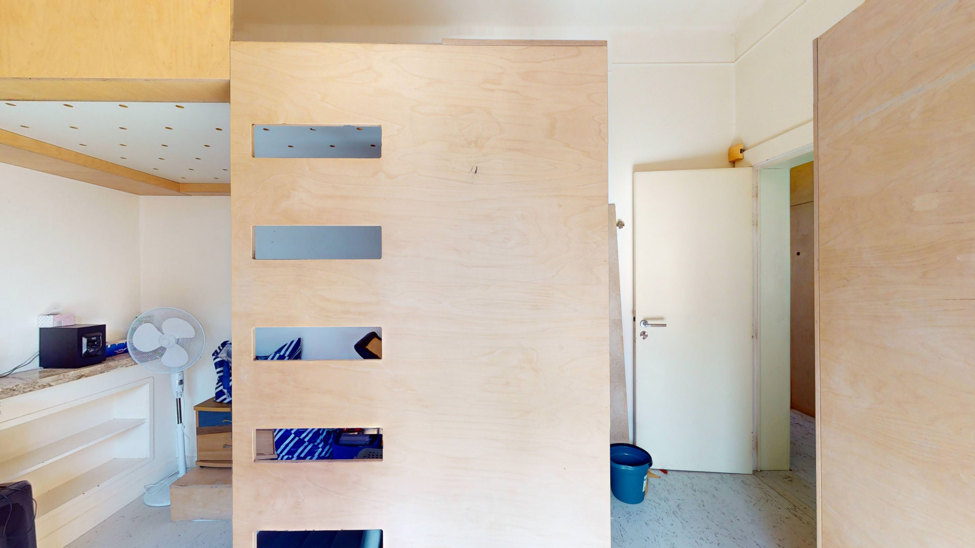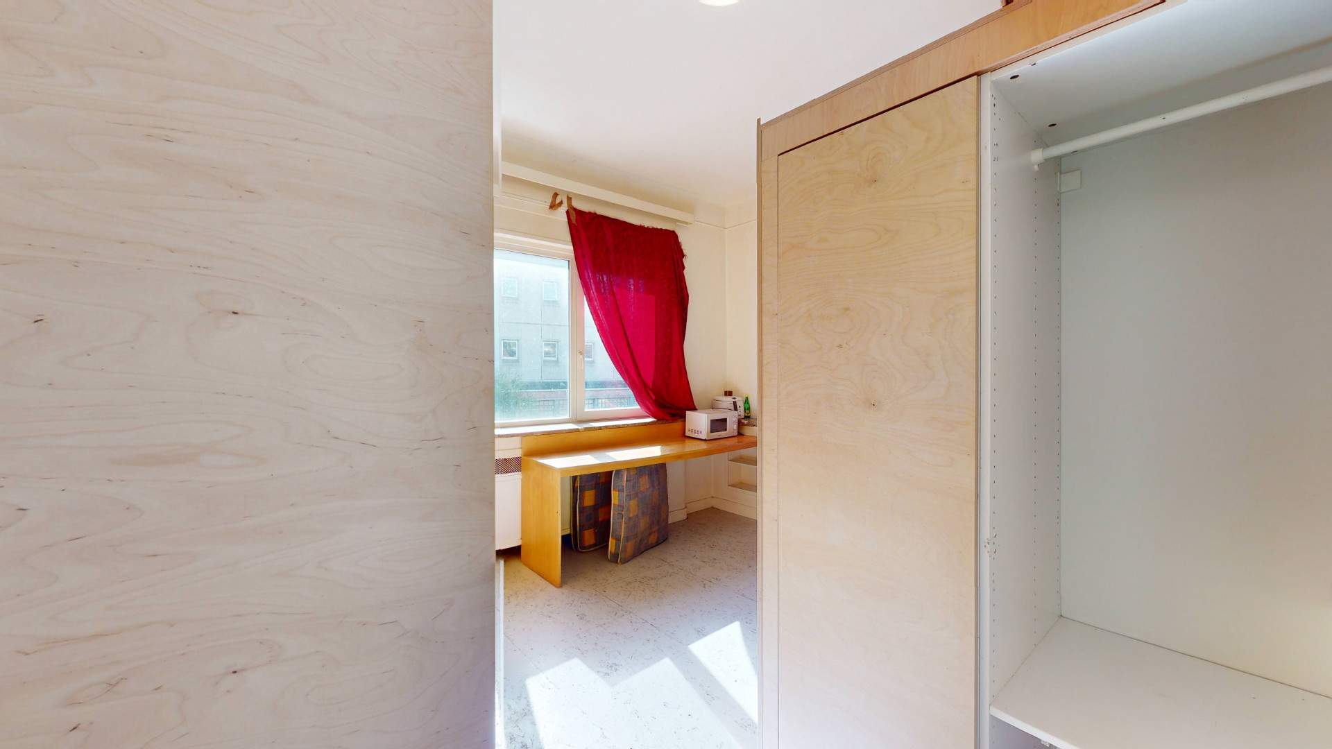 Logements collectifs répartis sur plusieurs niveaux, chambres privatives équipées chacune de douche individuelle, évier privatif, mobilier sur mesure (garde-robe, bureau, lit en mezzanine).