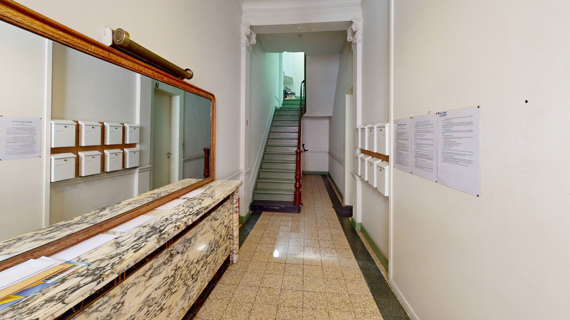 L’immeuble développe une surface habitable d’environ 300 m², complétée par des caves (± 90 m²), une terrasse (± 20 m²) et un jardin privatif (± 50 m²).